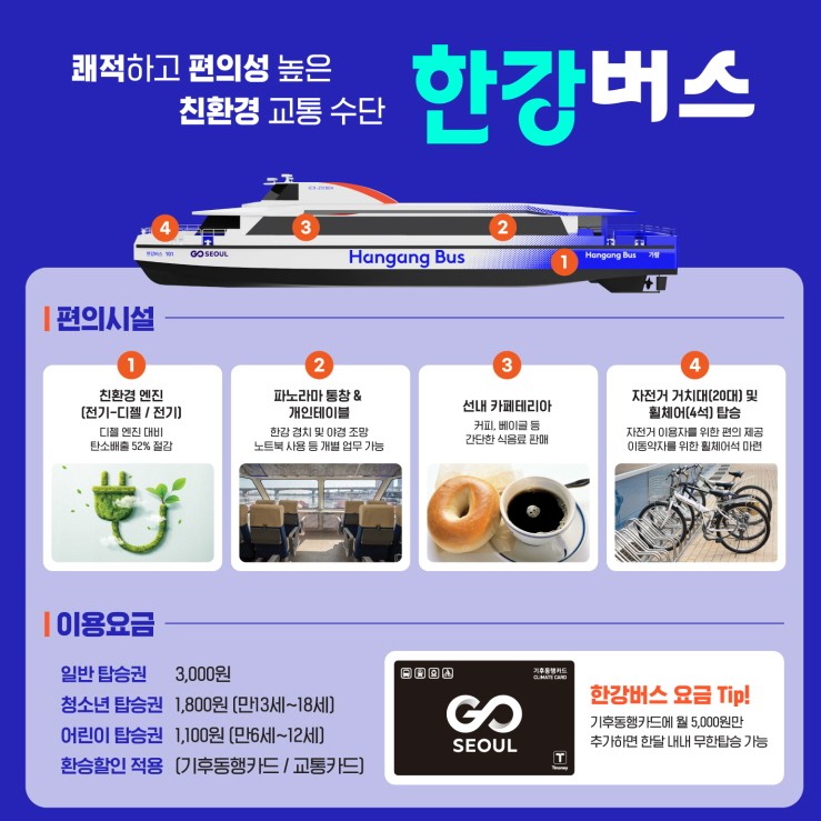 9월부터 적용되는 한강버스 이용요금 및 편의시설